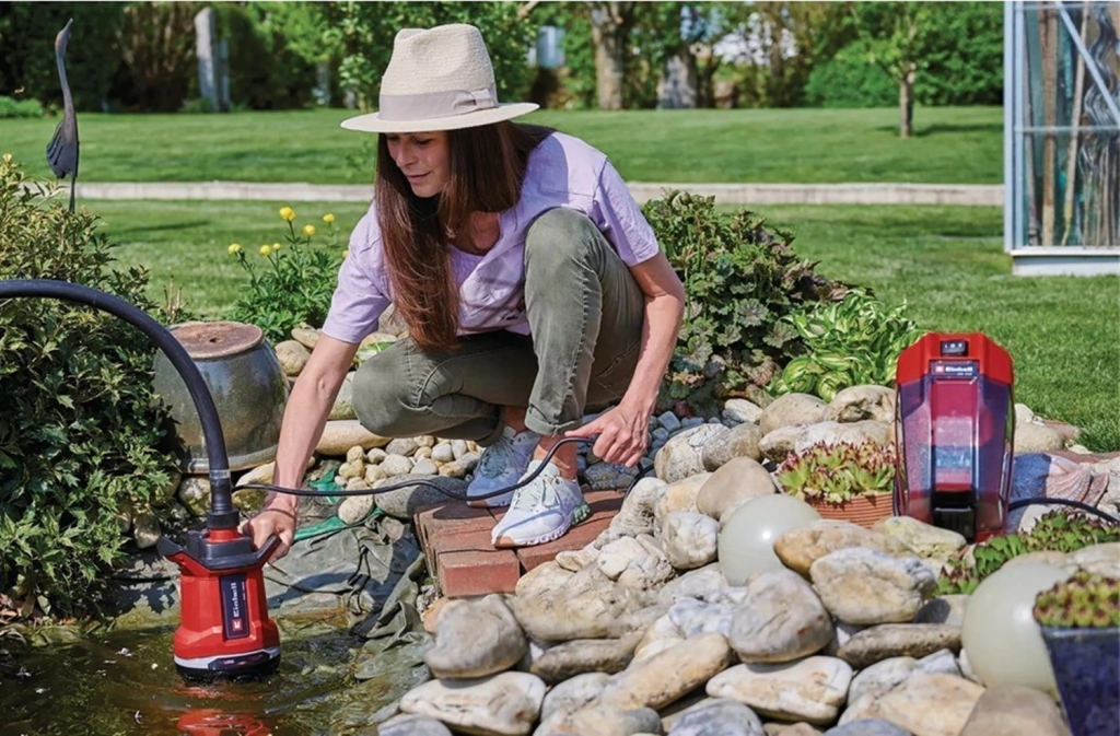 La bomba de agua sucia inalámbrica Einhell GE-DP 18/25 Li es un todoterreno cuando es necesario bombear agua limpia o sucia. La potente bomba forma parte de la familia Einhell Power X-Change, en la que se pueden combinar de forma flexible baterías, cargadores y dispositivos del sistema. Gracias a la batería, la bomba de agua sucia se puede utilizar de forma flexible, independientemente de la conexión eléctrica. La batería está protegida por una caja robusta y a prueba de salpicaduras y, gracias al soporte de pared y a los ganchos de montaje, se puede colgar en paredes, barriles de lluvia, vallas, etc. En la caja de la batería se encuentra integrado un soporte para el cable de conexión de 5 metros de longitud, que permite sumergir la bomba hasta 4 metros de profundidad. El motor de 153 vatios permite un caudal máximo de 7.500 litros por hora con una presión máxima de suministro de 0,5 bar. La bomba tiene dos niveles de potencia: el modo ECO garantiza tiempos de funcionamiento más prolongados con menor consumo de batería, mientras que el modo BOOST proporciona el máximo caudal. La bomba a batería es adecuada para agua con partículas de suciedad de hasta 25 mm de tamaño. Para poner en marcha la bomba, el nivel del agua debe ser como mínimo de 40 mm; La potente bomba puede bombear hasta un nivel de agua residual de 35 mm. El asa de transporte de doble cara permite un fácil transporte. La bomba está equipada con una conexión de presión de 42 mm (rosca macho de 1 1/4") y se suministra con un adaptador universal para mangueras de 25/32 mm con rosca macho de 1" (33,3 mm). La bomba de aguas sucias a batería GE-DP 18/25 Li se entrega sin batería ni cargador. Estos están disponibles por separado.