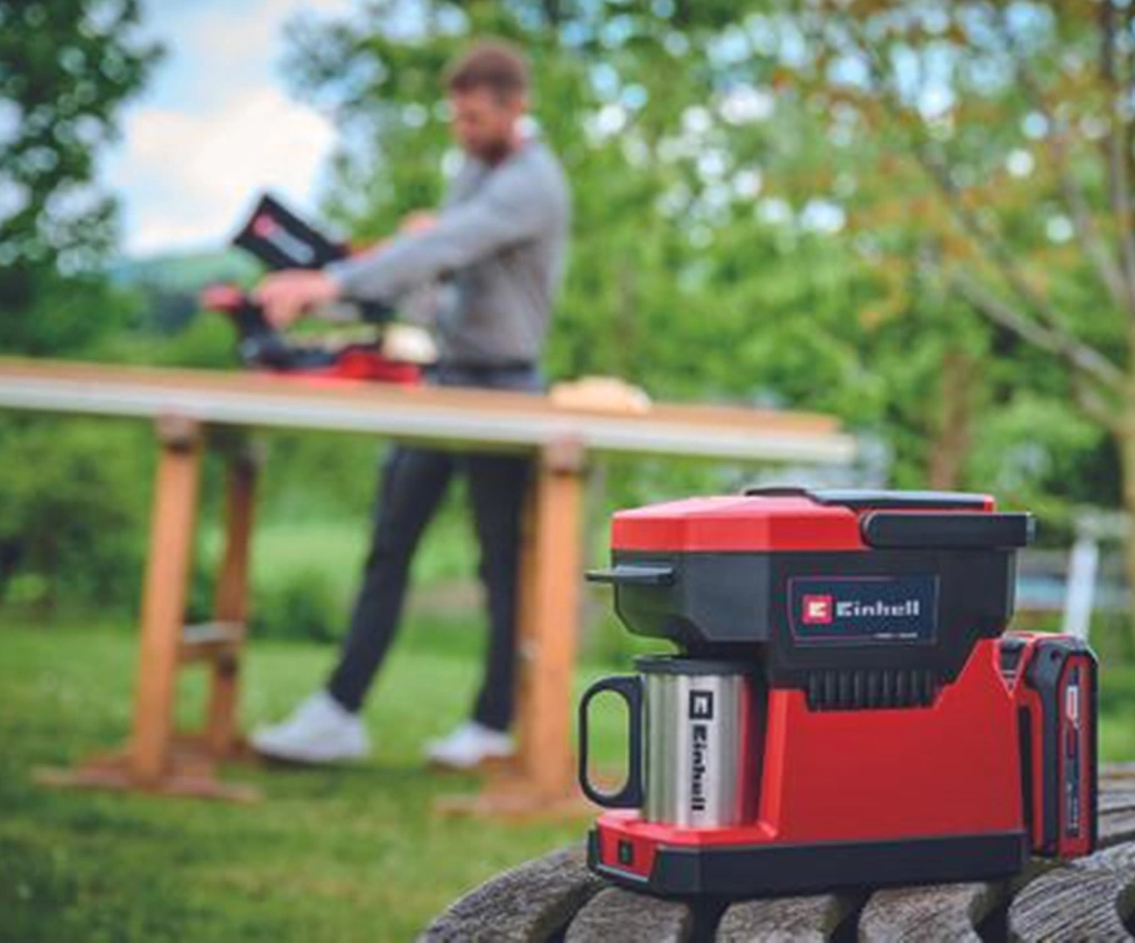 El uso de cápsulas de café no supone ningún problema gracias al recipiente correspondiente incluido en el envío. Una temperatura de preparación perfecta de 80 °C garantiza una taza de café fresco con la máxima movilidad en la obra, al aire libre o en el camping.