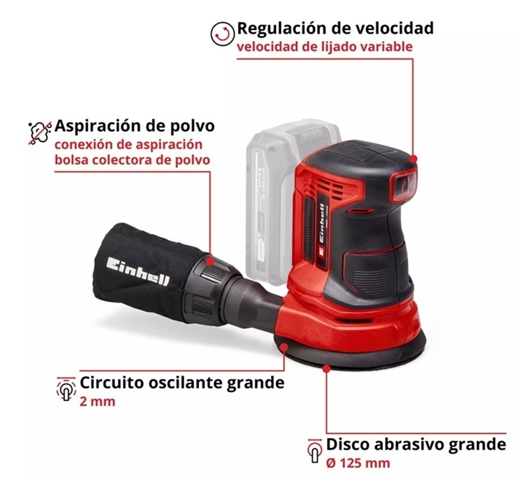 La lijadora rotativa inalámbrica Einhell TE-RS 18 Li - Solo ofrece flexibilidad inalámbrica e independiente para trabajar en casa, en el garaje o en el taller. Pertenece a la serie Power X-Change. Las baterías de iones de litio de alta calidad son compatibles con todos los modelos de la familia Power X-Change. Ya sean materiales compactos o blandos, gracias a su electrónica de velocidad, la herramienta se adapta al material y la aplicación al trabajar en superficies de madera, metal o piedra. Gracias a su diseño excéntrico, se consigue un acabado de alta precisión y un alto rendimiento de lijado. La empuñadura suave proporciona un manejo seguro y cómodo. El cierre de velcro permite sujetar el papel abrasivo con firmeza, lo que permite cambiarlo con un simple giro de la mano. Incluye un extractor de polvo integrado para mantener el área de trabajo limpia y sin polvo, y también se puede conectar un extractor de polvo externo. Incluye un papel abrasivo (P80). La batería y el cargador se venden por separado.