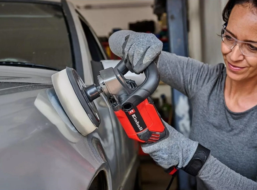 La pulidora-lijadora Einhell CC-PO 1100/150 CE es una potente herramienta para el aficionado al bricolaje experimentado, ideal para pulir superficies pintadas, así como para lijar madera, plástico y metal. La velocidad del disco de pulido o de rectificado se puede adaptar de forma óptima a la superficie correspondiente mediante la electrónica de velocidad. La electrónica constante permite un funcionamiento sin pérdida de velocidad incluso bajo carga elevada. El disco de lijado se puede cambiar rápida y fácilmente mediante el bloqueo del husillo. La almohadilla de lijado está equipada con un cierre de micro-velcro para sujetar de forma segura los distintos accesorios de lijado y pulido. Gracias a su diseño ergonómico con empuñadura suave, la máquina pulidora se adapta de forma segura a la mano en todo momento. El gran mango adicional garantiza resultados precisos, por ejemplo al cuidar la pintura, y permite un mejor control del dispositivo. La pulidora y rectificadora se entrega con amplios accesorios. El volumen de suministro incluye: un accesorio de espuma, una capucha de pulido sintética y tres papeles de lija (1 P60, 1 P80, 1 P120 cada uno).