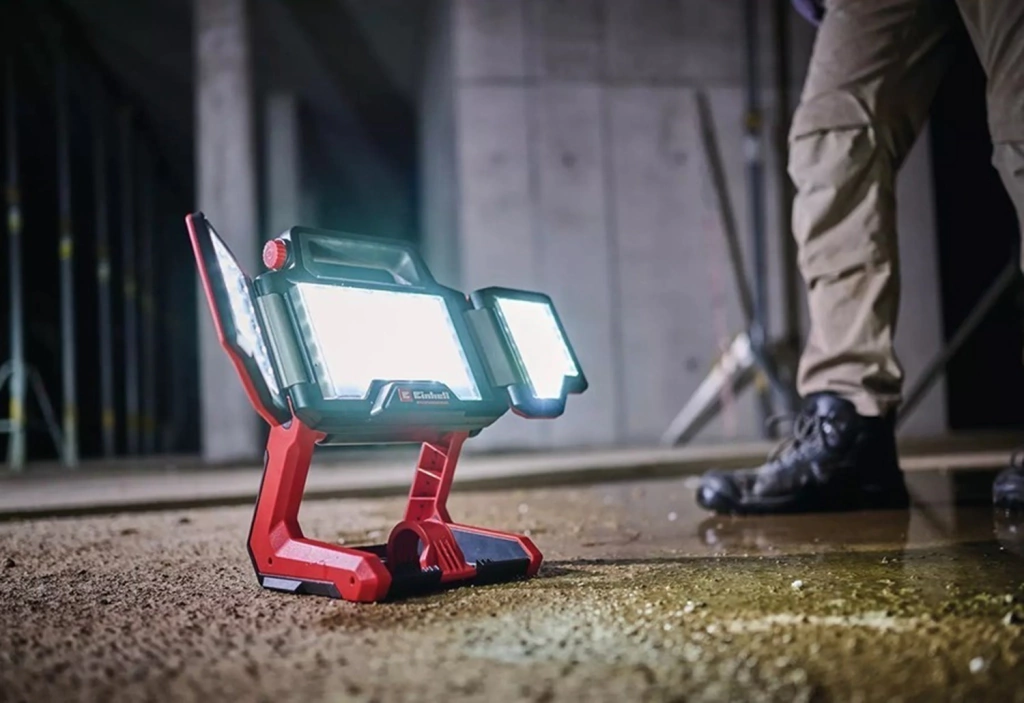 La lámpara inalámbrica Einhell TP-CL 18/3000 Li está equipada con paneles de luz ajustables. Estas luces móviles pueden iluminar un área de hasta 270°. Junto con el cabezal de luz orientable, permite una iluminación individual y de grandes superficies en el garaje, la casa, el jardín o en la obra.