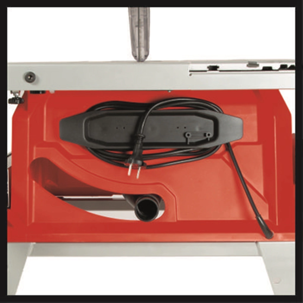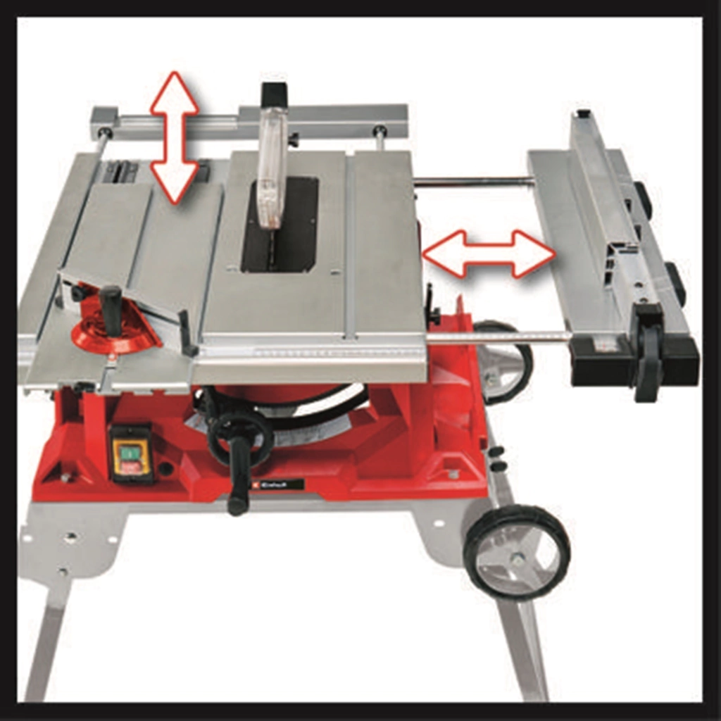 La sierra de mesa Einhell TE-CC 250 UF con función de formato, equipada con una hoja de sierra de precisión de carburo, es una máquina básica sólida para cortes de precisión al acortar y recortar piezas de trabajo individuales hasta una altura de corte de 78 mm. La mesa plana de aluminio está equipada con excelentes propiedades de deslizamiento para cortes precisos. La mesa se puede extender hacia atrás hacia el lado derecho para piezas de trabajo más anchas. Un empujador con soporte garantiza una distancia segura con respecto a la hoja de sierra. El carro deslizante de formato facilita la ejecución de cortes largos y precisos. El ajuste dos en uno de la hoja de sierra permite ajustar la altura y la inclinación de la hoja de sierra para adaptarse a sus necesidades de corte con un solo movimiento. El tope paralelo está equipado con una fijación de doble cara y su estabilidad garantiza un trabajo preciso. El tope transversal tiene una escala de ángulo para cortes a inglete. La protección transparente de la hoja de sierra proporciona una mejor visión del proceso de corte. La carcasa está equipada con una conexión de extracción de virutas, lo que hace que el puesto de trabajo sea fácil de limpiar. La base plegable de la sierra de mesa está equipada con ruedas para uso móvil. El soporte para accesorios garantiza un transporte organizado. El interruptor de sobrecarga protege el motor contra daños en caso de sobretensión, y el arranque suave integrado también protege tanto el motor como los fusibles.