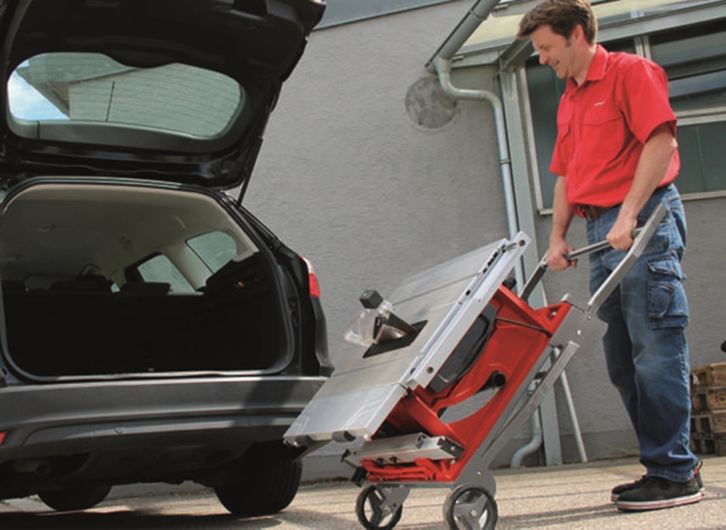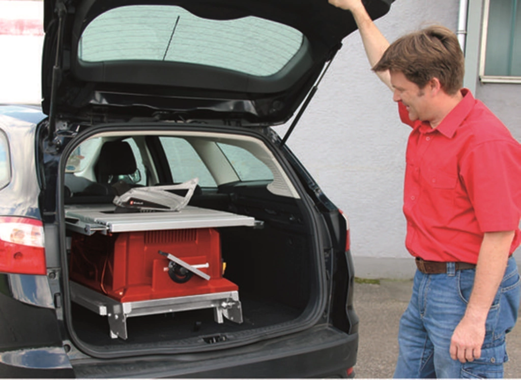 La base plegable con ruedas hace que la sierra sea fácil de transportar y ahorra espacio en el garaje o taller.